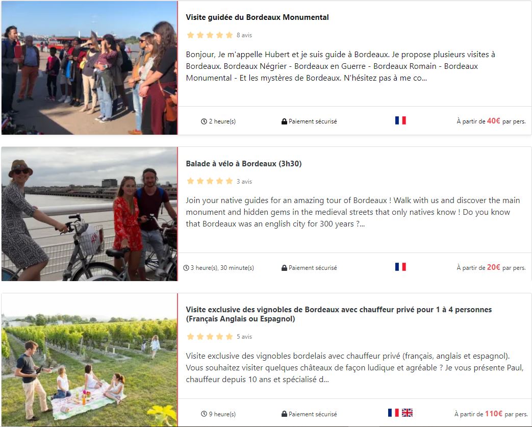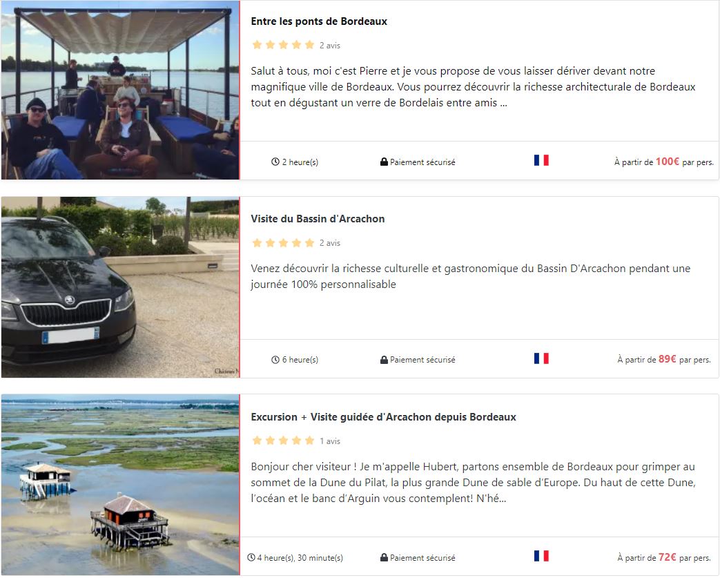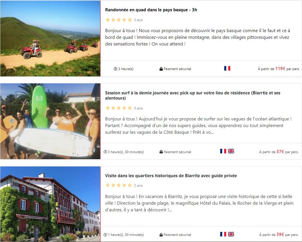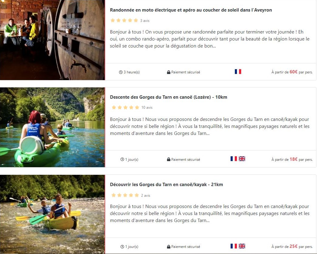 Encore une fois, aujourd’hui vous avez de nombreux sites qui proposent des activités en France, les Français WeLink.fr et Manawa, l’Allemand GetYourguide ou l’Américain Airbnb Expérience.