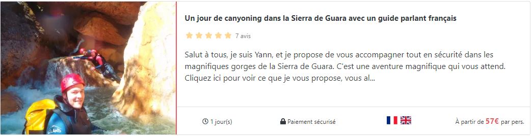 Cliquez ici pour organiser votre excursion dans la Sierra de Guara. Le guide parle Français