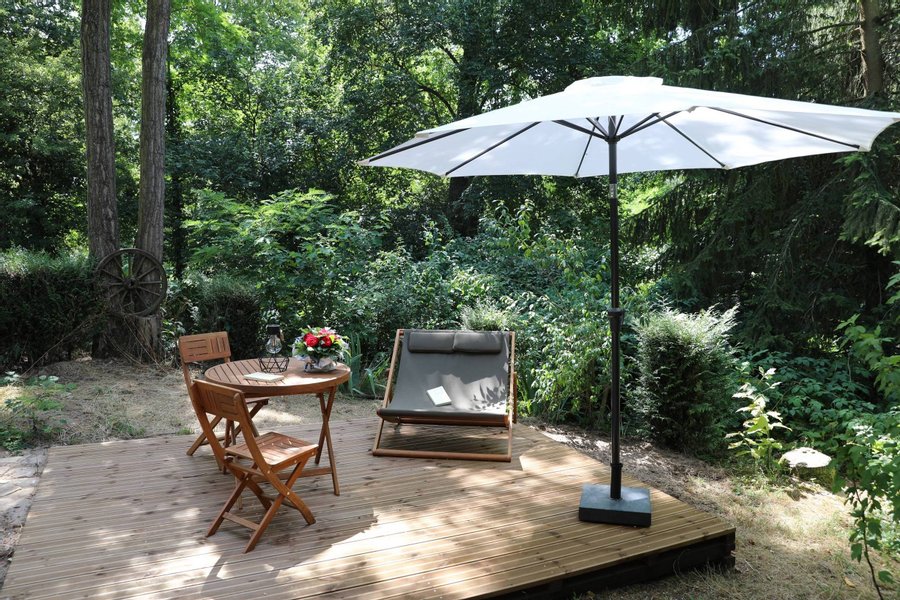 Cette cabane dans les arbres à 1h de Paris se trouve à Rosoy-en-Multien. À l’abris des regards, dans une petite clairière se trouve cette charmante demeure de 40m². Cette fois-ci, pas d’escalade ou de pont à traverser, il s’agit d’une cabane de plein pied.