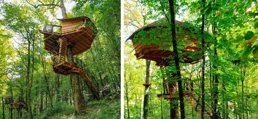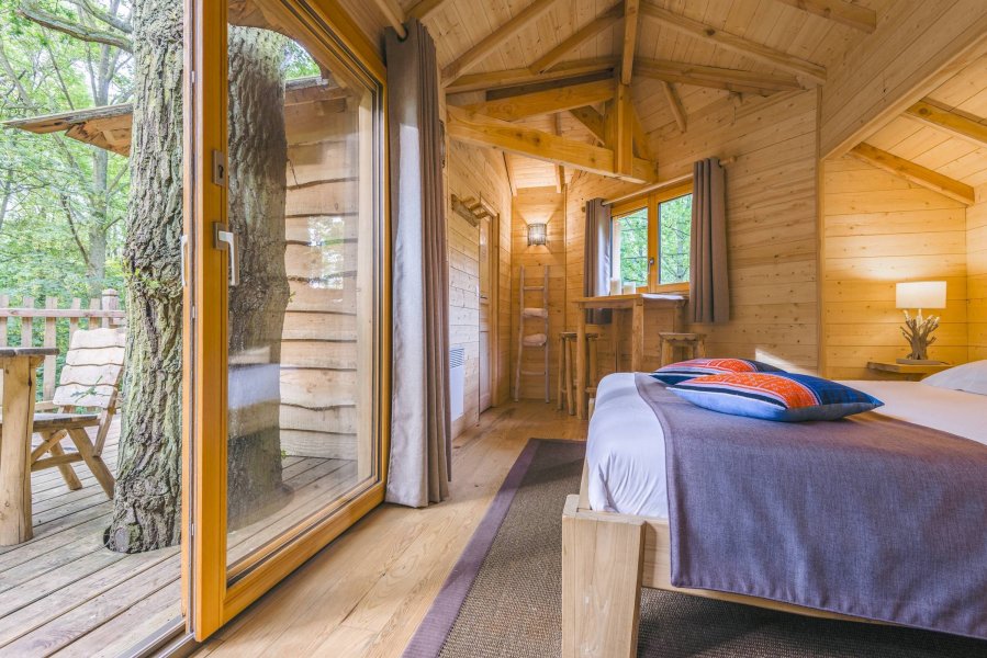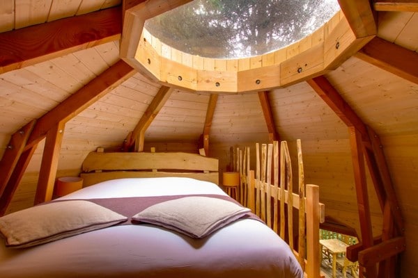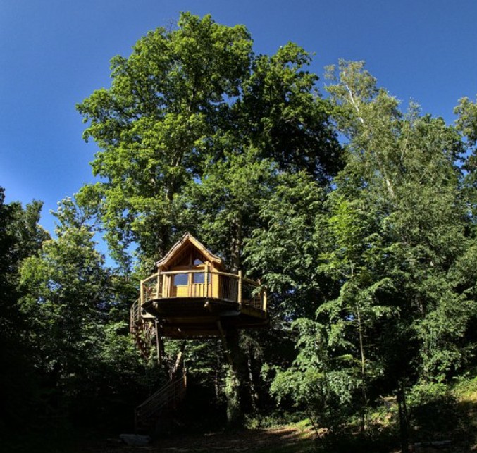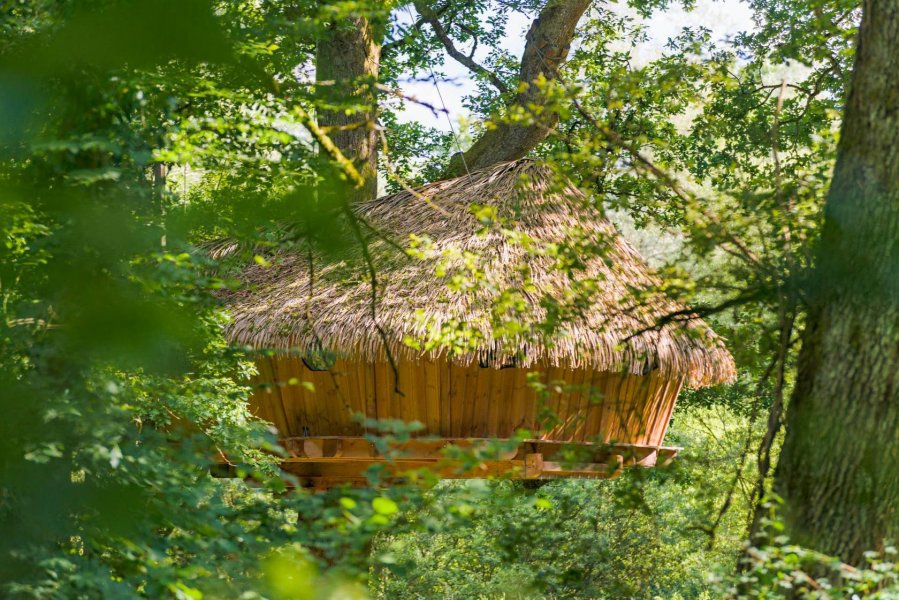 Prix : 105 € par nuit, petit déjeuner inclus.À 12 mètres de haut, cette magnifique cabane peut accueillir jusqu’à 5 personnes. À cette hauteur, la vue sur le domaine est éblouissante.