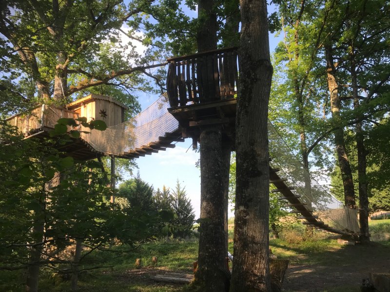 À 7 mètres de hauteur, la Cabane du Vieux Chêne offre une jolie vue sur le ruisseau « le vive aiguë ». L’accès ludique laissera sans doute s’exprimer votre âme d’aventurier, puisqu’il n’est autrement possible que par deux ponts de singe de 10 mètres chacun…