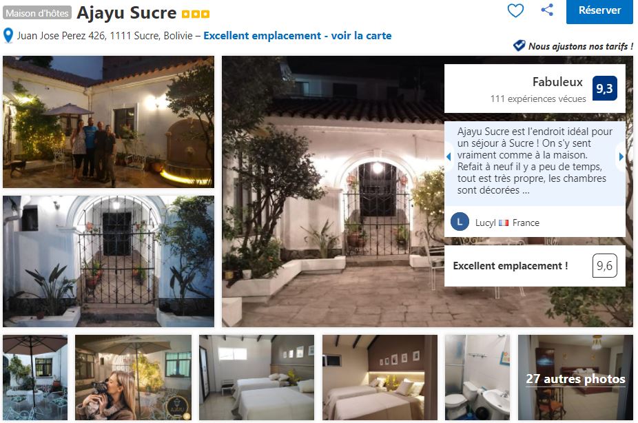 - L’hôtel Ajayu : cette maison coloniale est magnifique. Le vrai plus pour moi a été la mise à disposition de la cuisine et d’une machine à laver ! En réservant à l’avance dans cet établissement, on sait qu’on aura pas besoin de se charger car on pourra laver ses affaires au milieu du voyage ! Réserver l’Ayaju sur Booking