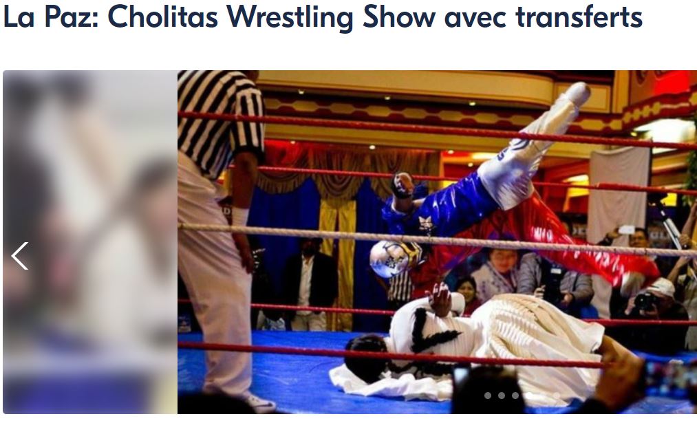 Vous y verrez des cholitas (femmes indiennes boliviennes en jupe, chapeaux et tresses traditionnelles) s’affronter avec des cascades théâtrales !