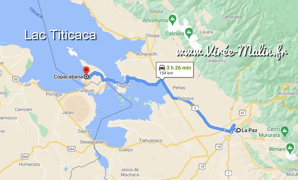 - Cliquez ici pour agrandir cette GoogleMap – Circuit Bolivie – La Paz vers Copacabana – Lac Titicaca :