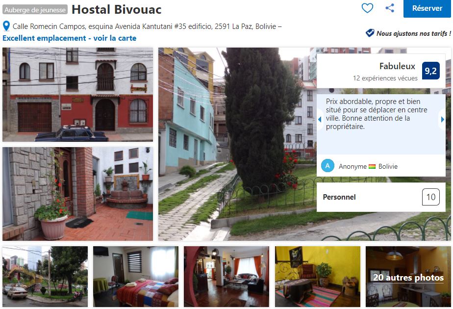 L’Hostal Bivouac est une petite auberge familiale à 800 mètres de la station de téléphérique Sopocachi. On s’y sent bien, grâce notamment à la propriétaire des lieux, jamais avare de bons conseils.