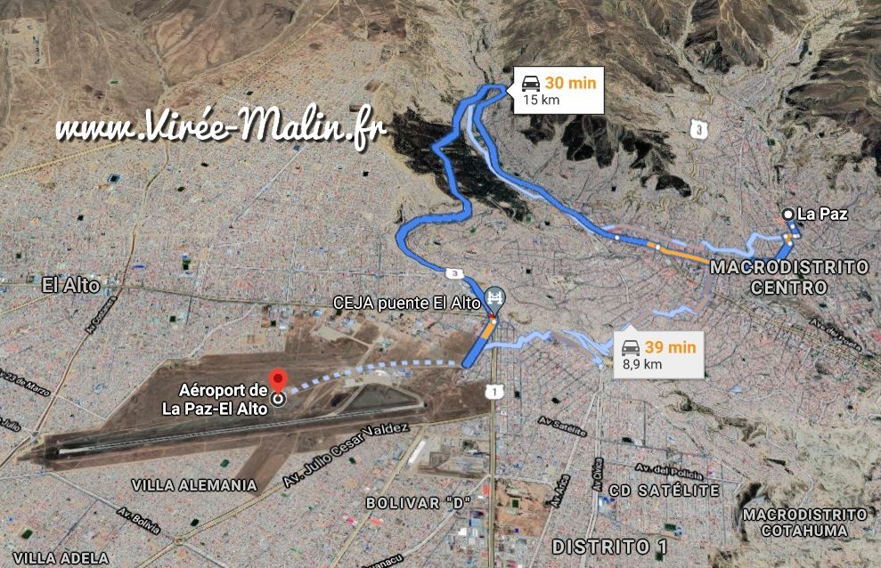 - Cliquez ici pour agrandir cette GoogleMap – Transfert aéroport La Paz Bolivie :