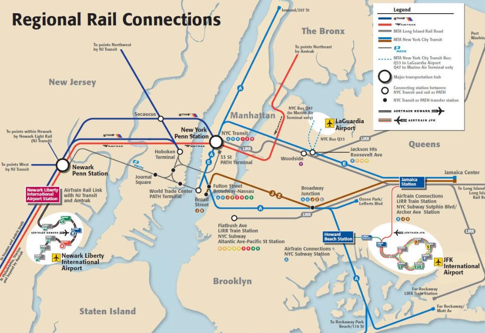 La Station Pennsylvania se trouve en plein coeur de Manhattan, c’est à cette station que vous allez arriver, c’est donc vers cette station que vous devez prendre le train à Jamaica. Cette ligne s’appelle la « Long Island Rail Road« .