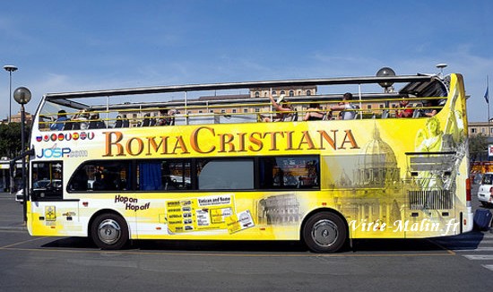 Avec le Omnia vous avez droit au bus jaune ‘bus ouvert de Roma Cristiana’. Personnellement je préfère les bus touristique rouges de Rome). Si vous voulez juste réserver le bus touristique rouge cliquez ici.