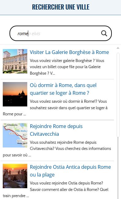 Insérez des mots clés, exemple « Rome » ou « Aéroport Rome » ou « Visite guidée barcelone » ou « Sagrada »… il y a de fortes chances pour qu’un article puisse répondre à votre question, regardez aussi dans les commentaires d’un de ses articles, il y a plus de 10.094 commentaires et plus de 300 articles sur Virée-Malin.