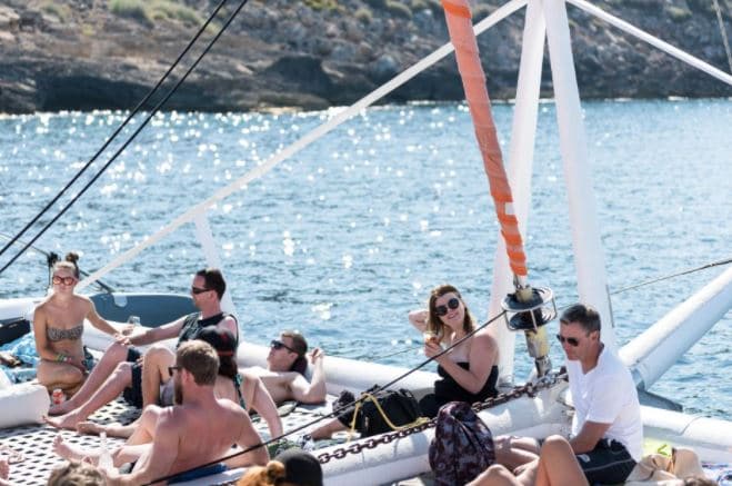 En effet, vous pouvez compter sur la présence d’un DJ professionnel pour mettre l’ambiance, d’un bar ouvert avec des boissons (sans alcool) pour vous hydrater, un buffet pour déjeuner et des escales aquatiques (ce que vous allez préférer) pour explorer les eaux turquoise en toute sécurité.