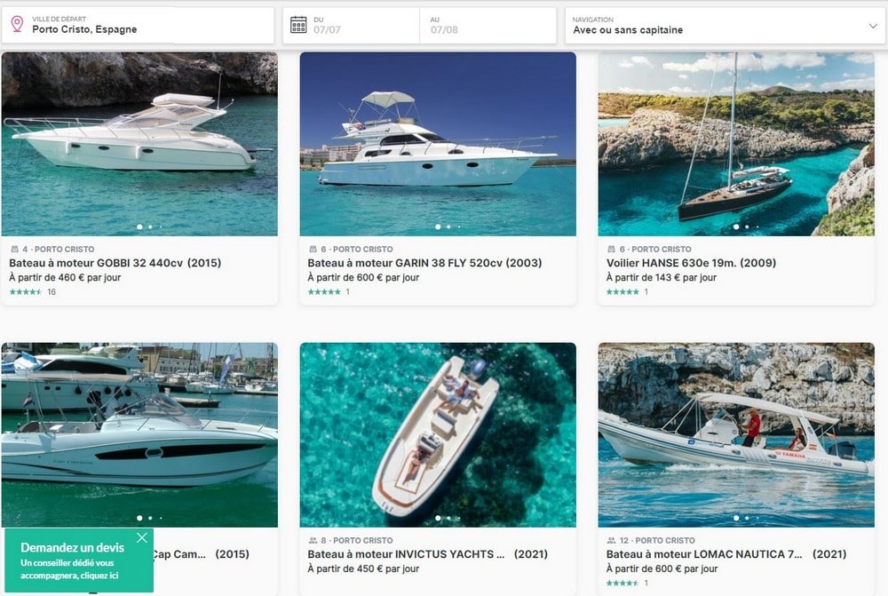 - Vous voulez louer votre propre bateau à Porto Cristo ?