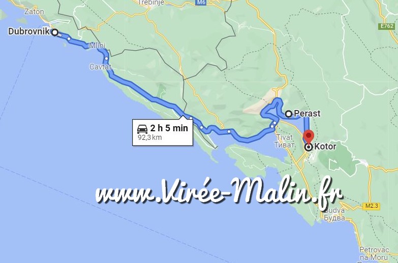 - Cliquez ici pour agrandir cette GoogleMap – Rejoindre Kotor depuis Dubrovnik :