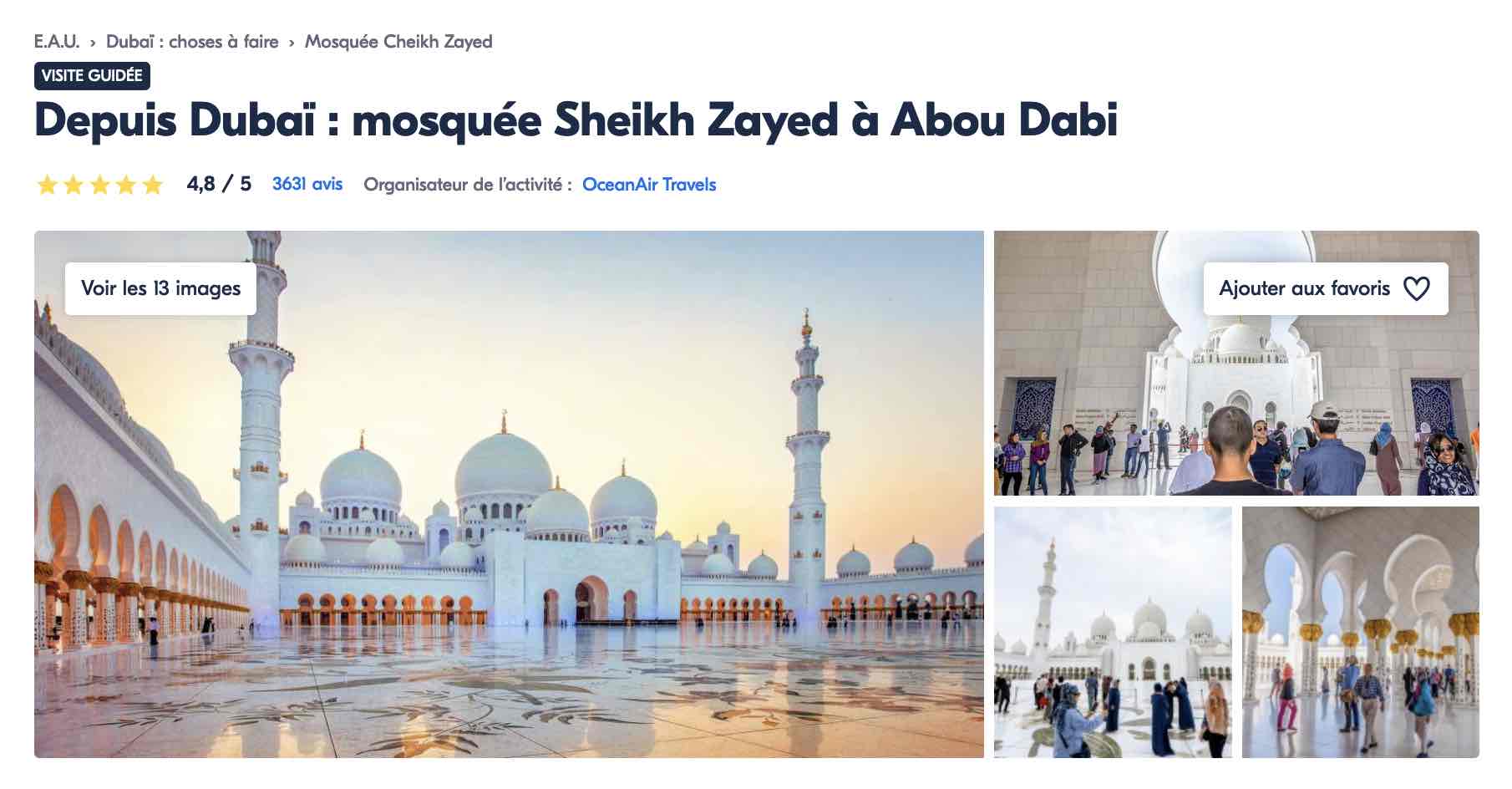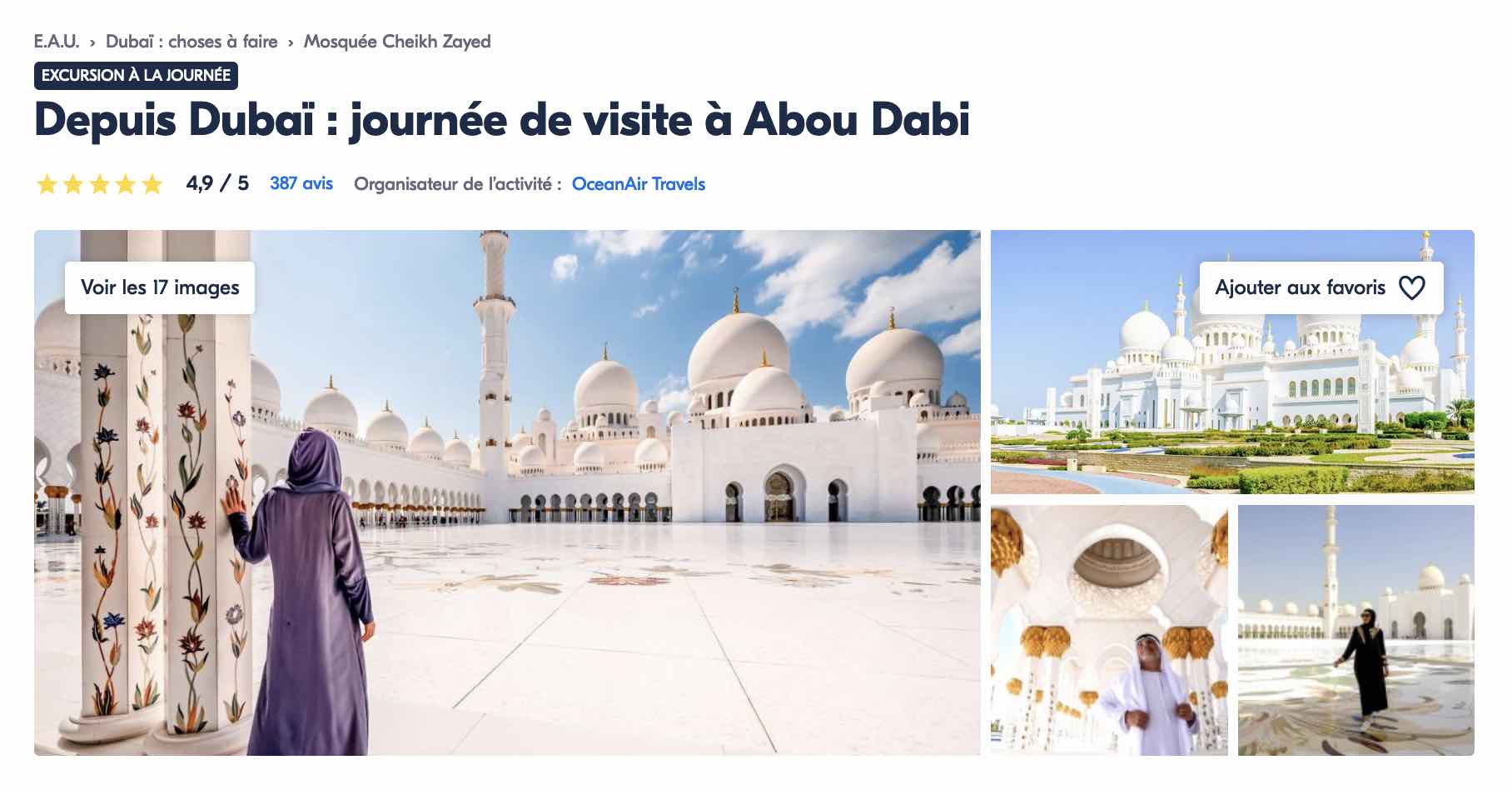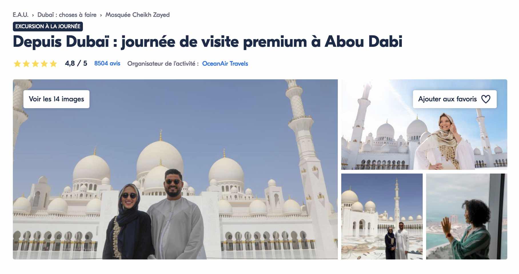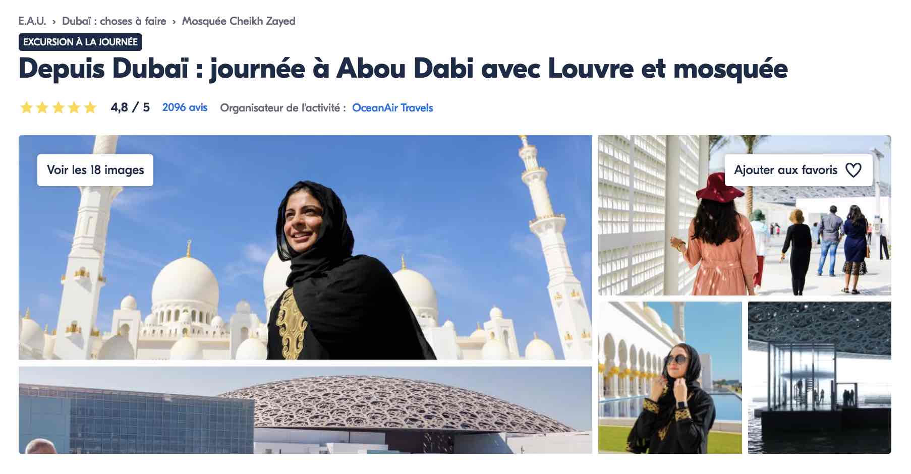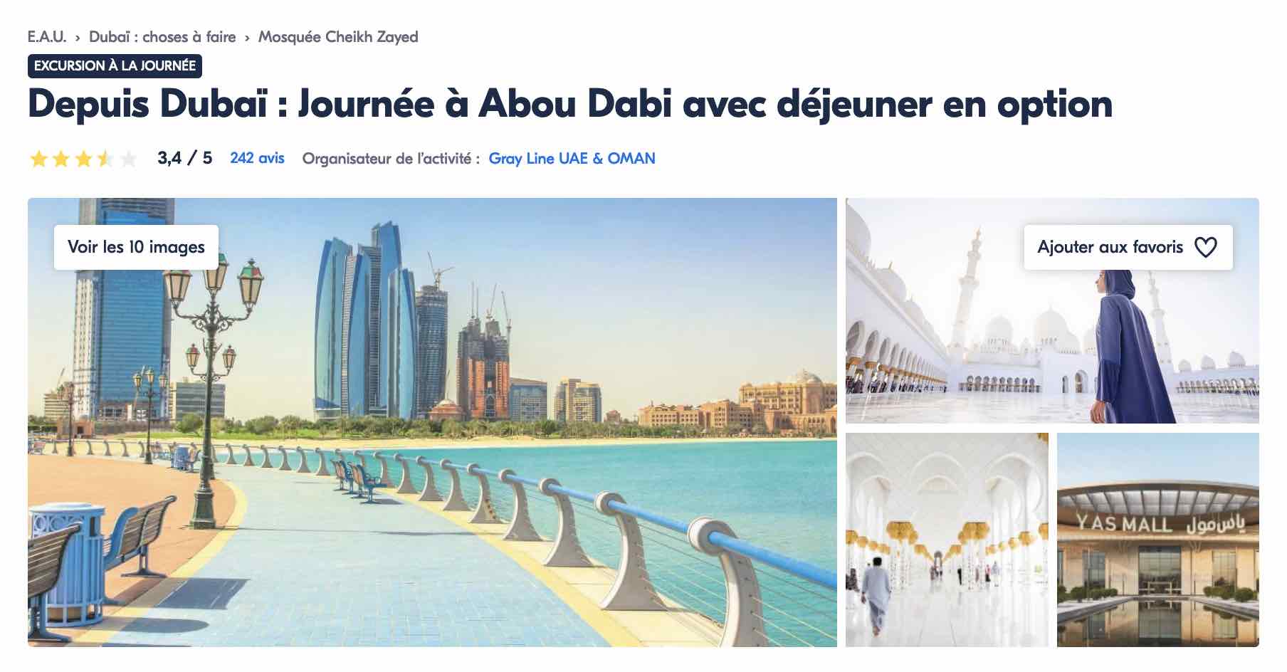 Le tarif de cette excursion à Abu Dhabi depuis Dubaï est très accessible avec un prix de départ à moins d’une quarantaine d’euros, selon la période de votre séjour aux Emirats Arabes Unis.