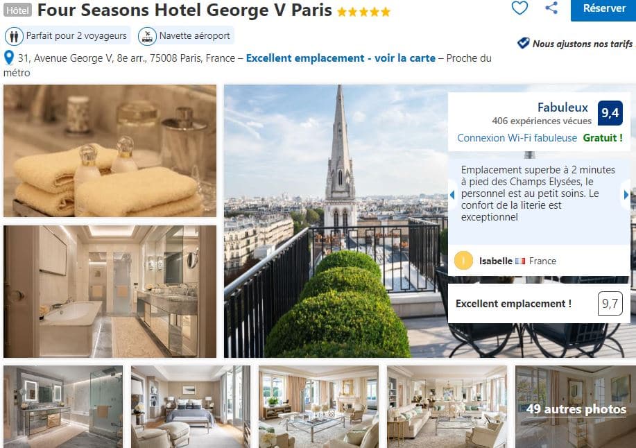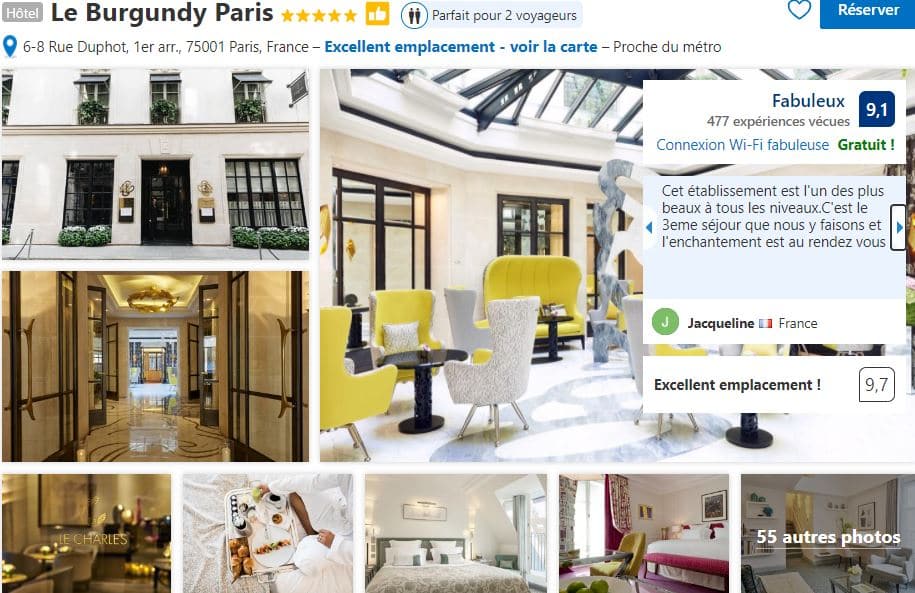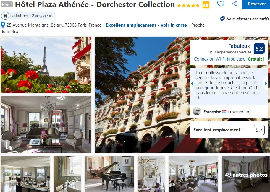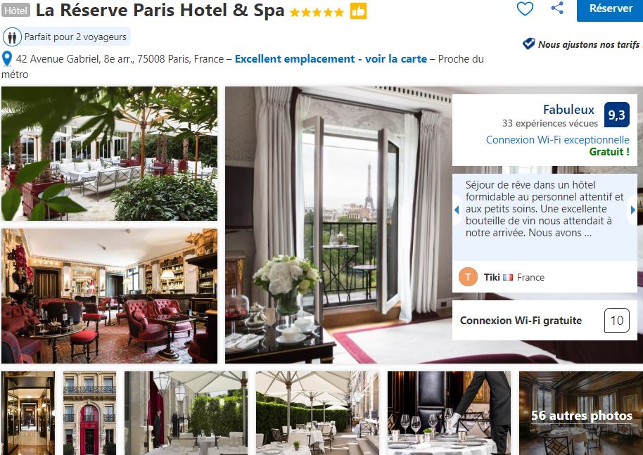 - Cliquez ici pour réserver, voir les avis, voir les disponibilités de cet hôtel de Luxe à Paris :