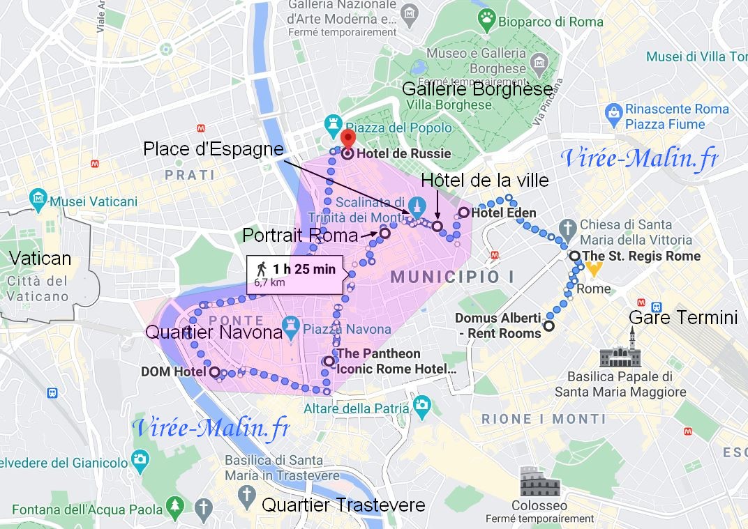 Avant de commencer cette présentation voilà une carte qui vous permettra de savoir que visiter à Rome. Un lieu stratégique pour savoir où dormir à Rome c’est entre le quartier Navona et la place d’Espagne.