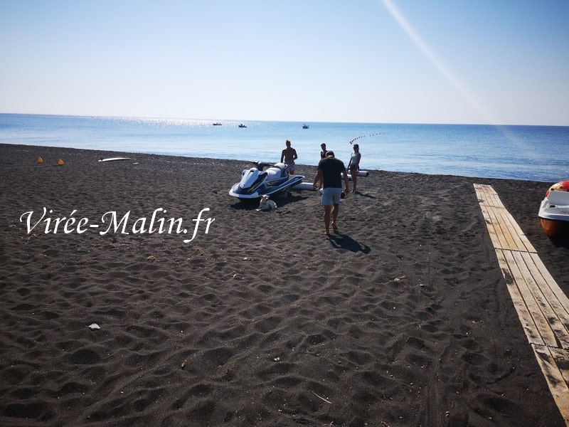 Pour ma part c’est à Perissa (plus exactement à MeraBeach) que j’ai retrouvé l’agence de JetSki qui propose cette activité Jet Ski. Pour m’y rendre vous avez deux solutions, soit vous y allez en scooter soit vous y allez en taxi. Même si Santorin est une petite île il vous faudra quand même 30 minutes pour vous y rendre, donc partez à l’heure !