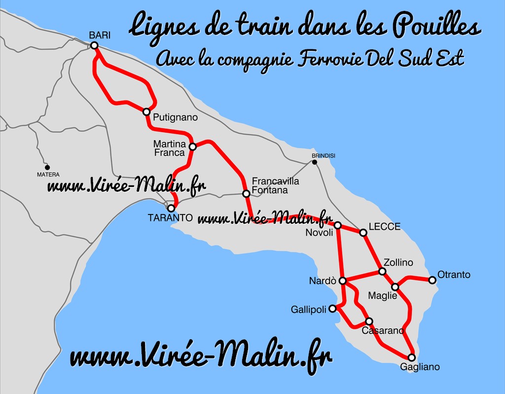- 4) Les liaisons en train avec correspondances dans les Pouilles