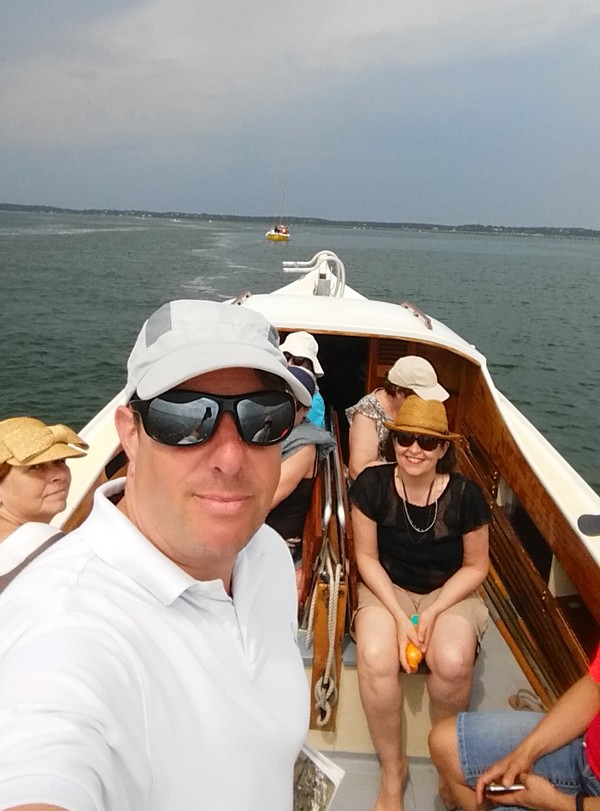 - 14h30 On fini de déjeuner tranquillement et on repart en bateau en longeant la pointe du cap ferret. Olivier nous explique l’historie de cette pointe et de certains de ses illustres habitants.