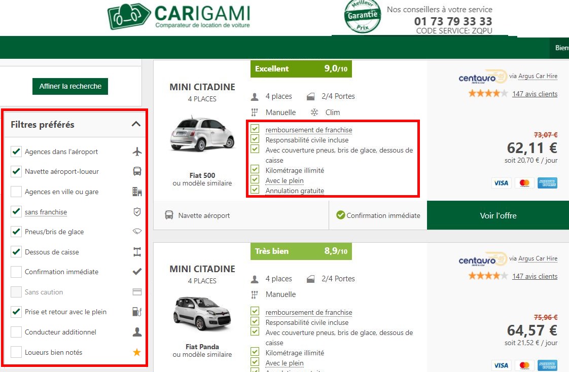 Et bien justement non, c’est moins cher sur le site Carigami.fr car ils ont signé des accords et vu que c’est un site très connu ils arrivent à baisser les prix!