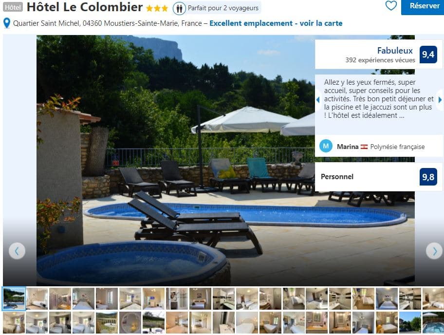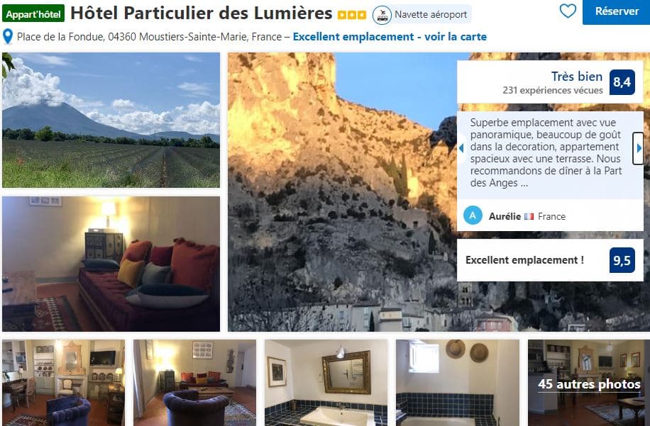 Comme je vous l’ai dit dans ce cas il vaut mieux chercher proche de Moustiers qui se trouve à côté du Lac Sainte Croix. Vous avez plusieurs petites adresses sympathiques comme l’hôtel particulier des lumières :
