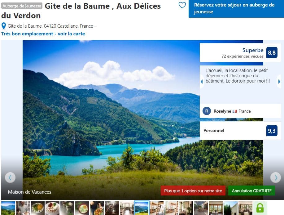 Si vous êtes plusieurs vous avez l’auberge de jeunesse aux Délices du Verdon, le prix se fait en privatisant des dortoires de 5 personnes minimum, à voir !