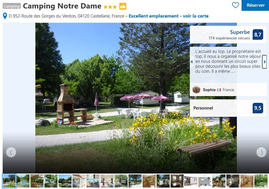 Si vous êtes à la recherche d’un camping, je vous conseille le camping Notre Dame qui est très bien placé. Vous en avez un autre un peu moins cher qui se trouve à côté, le camping Des Lavandes.