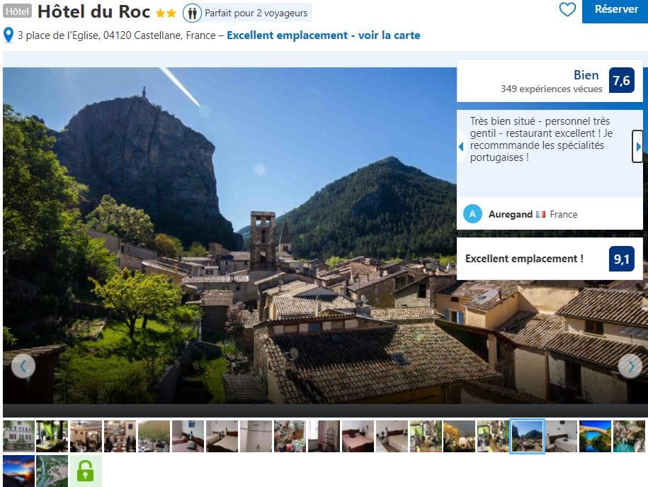 Vous avez l’hôtel du Roc, une petite adresse bien placé avec un bon rapport qualité/prix. C’est un logement idéal dans les Gorges du Verdon pour être proche des activités aux Gorges du Verdon !
