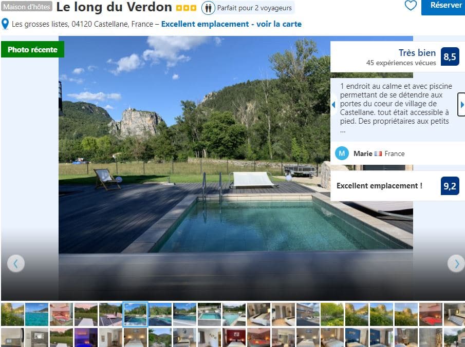 La maison d’hôte « Le long du Verdon » toujours très bien située avec un bon rapport qualité/prix, lisez les avis :