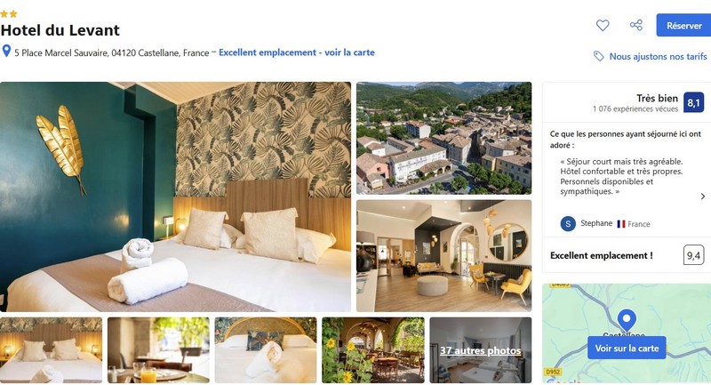 Un autre hébergement en plein centre de Castellane : l’hôtel du Levant. Ne vous fiez pas à la façade de l’établissement qui semble être surannée, la décoration des chambres et les équipements sont modernes et vous pouvez profiter d’une vue sur les montagnes environnantes.