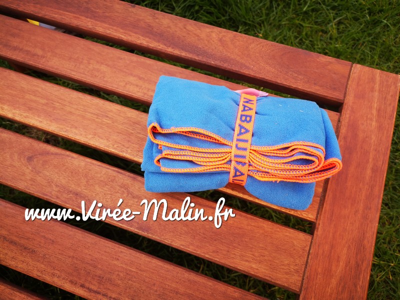 La serviette de bain, de toilette qui sèche ultra rapidement, coût 8€. Lien de ce produit sur Décathlon: