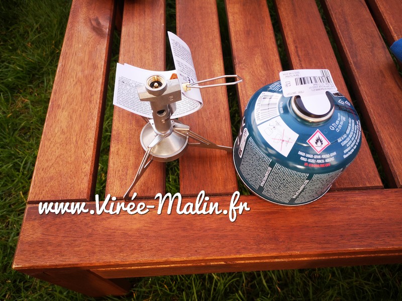 La cartouche de gaz coût 5,9€ (lien) et le réchaud à gaz léger (lien) et compact avec piézo – MT500, prix 35€ vous permettra de manger chaud une fois votre tente installé…