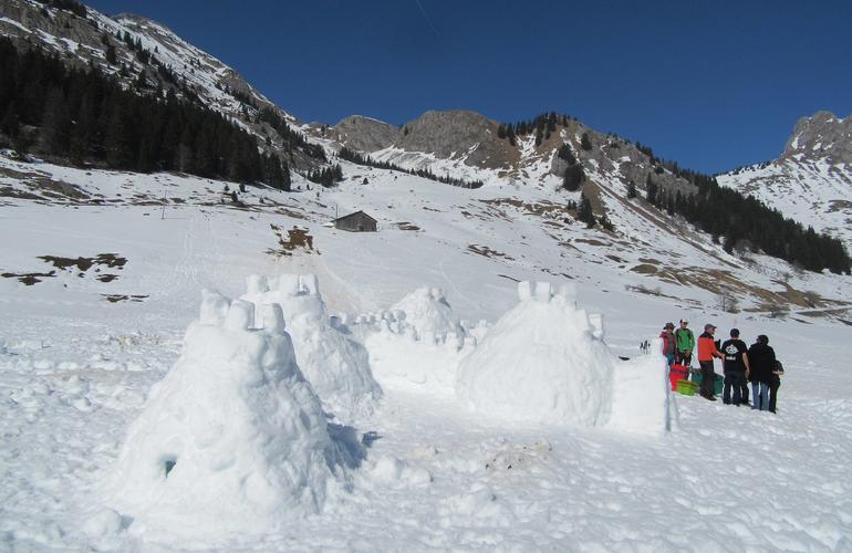 En Savoie et Haute-Savoie, les massifs et domaines skiables comptent une multitude de sentiers. Si vous avez gardé une âme d’enfant, essayez cette sortie à Avoriaz, mêlant raquette à neige et construction d’igloo !