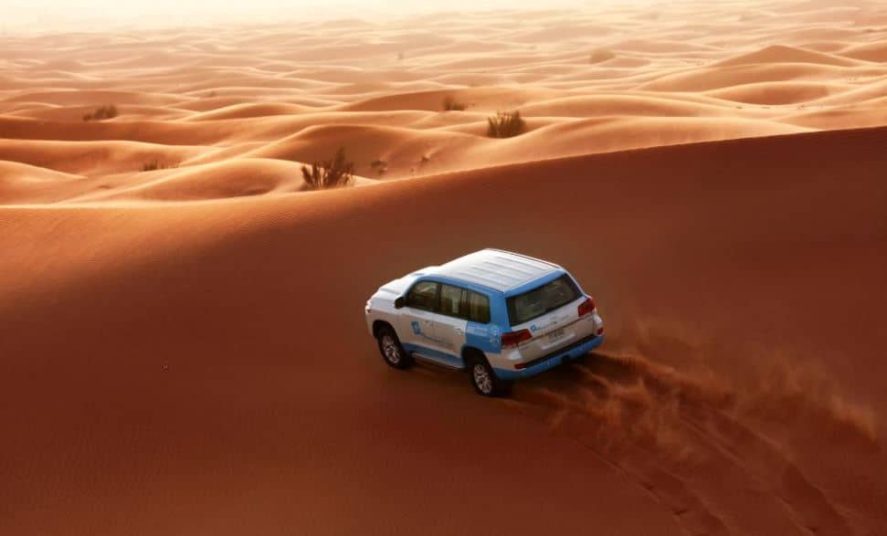 Nul besoin de vous inquiéter du point de rendez-vous, un 4×4 land cruiser viendra vous chercher directement à votre hôtel à Dubaï, point de départ de votre parcours vers le désert de Lahbab.