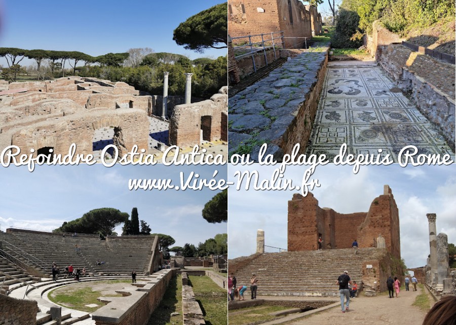 en effet il est très facile d’aller de Rome à Ostia Antica: métro depuis les stations de Cavour ou Coloséo jusqu’à EUR Maglia puis train juqu’à Ostia Antica, pour 1,50€ par personne.