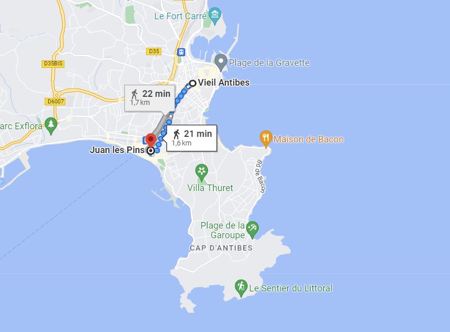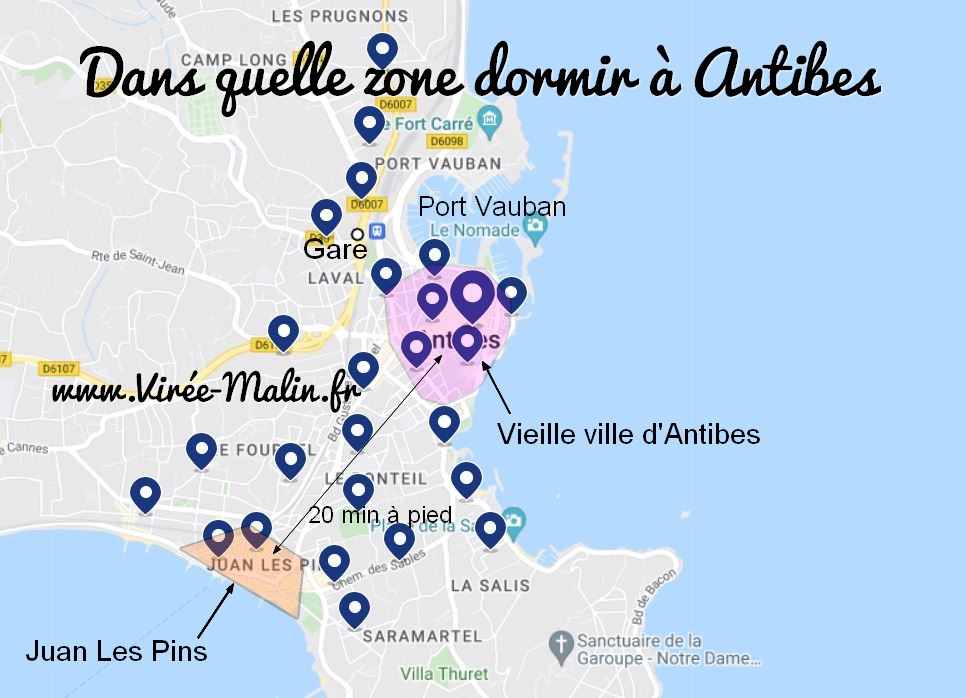 Pour ceux qui me font déjà confiance, c’est dans la zone violette que je vous conseille de trouver votre hôtel à Antibes, peu importe le prix, donc même si vous cherchez un hôtel pas cher à Antibes essayez de trouver un logement proche de cette zone afin de pouvoir profiter de cette magnifique cité à pied.