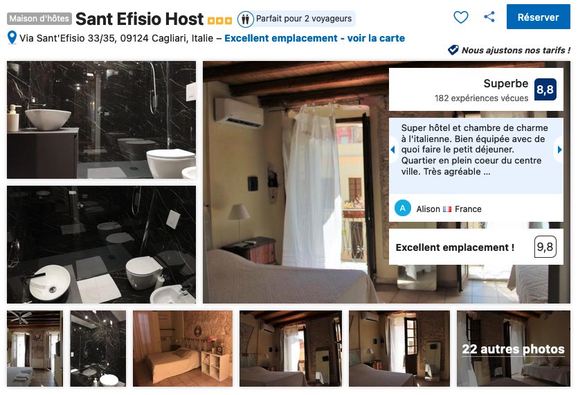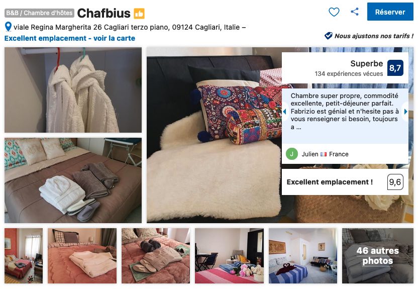 Vous avez aussi l’hôtel Italia que m’a recommandé un Italien qui vit à Naples. Vous êtes idéalement placé en plein coeur de Cagliari. Prenez 20 secondes pour lire les commentaires qui sont plutôt positifs.