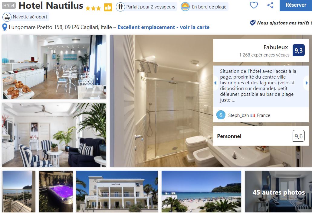 Une autre bonne adresse si vous voulez être à deux pas de la plage de Poetto, c’est l’hôtel Nautilus. Ils proposent souvent des discounts donc n’hésitez pas à jeter un oeil.