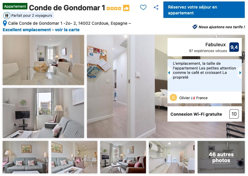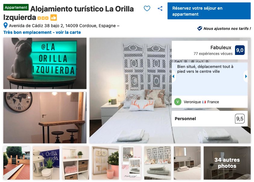 Si vous voyagez en famille et que vous êtes plus du genre à vouloir conserver votre indépendance, la location d’un appartement est une solution à privilégier et les adresses ne manquent pas à Cordoue même s’il faut faire attention aux promesses, pas toujours en accord avec la réalité. Malgré tout, en vous fiant aux commentaires des autres voyageurs, il est possible de trouver de petites perles où dormir à Cordoue.