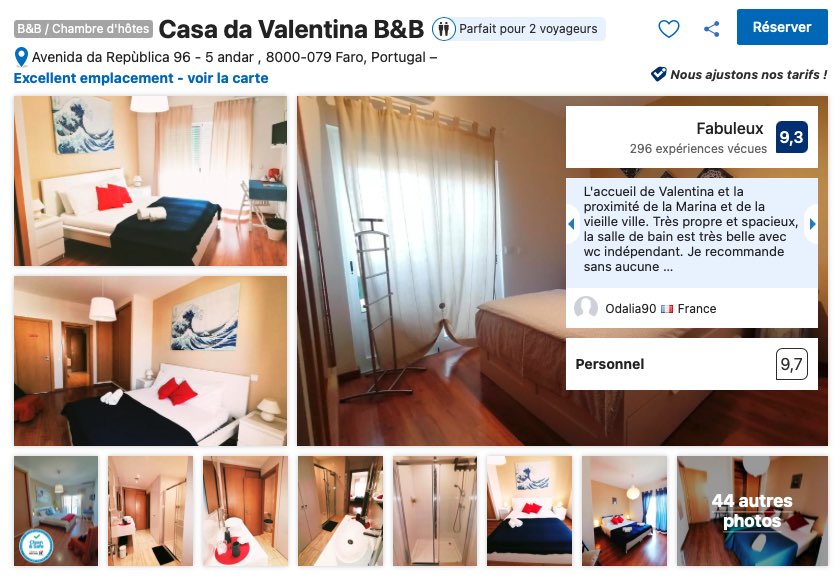 Dans une gamme supérieure mais pour un tarif raisonnable autour d’une cinquantaine d’euros, je vous conseille de passer votre séjour dans le B&B Casa da Valentina. Situé à 400 mètres du port de plaisance, l’ensemble des avis des voyageurs ne vont que dans le sens d’une qualité irréprochable des prestations et d’une grande disponibilité des propriétaires. Pour les amateurs de chambres d’hôtes, c’est l’endroit idéal où dormir à Faro.