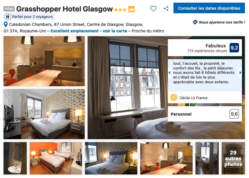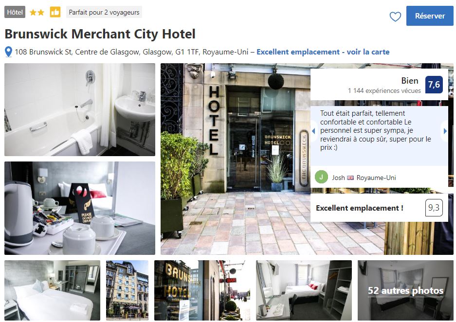 - Et vous dans quel hôtel avez-vous logé dans à Glasgow ?