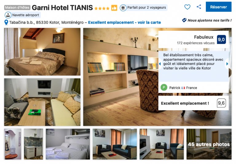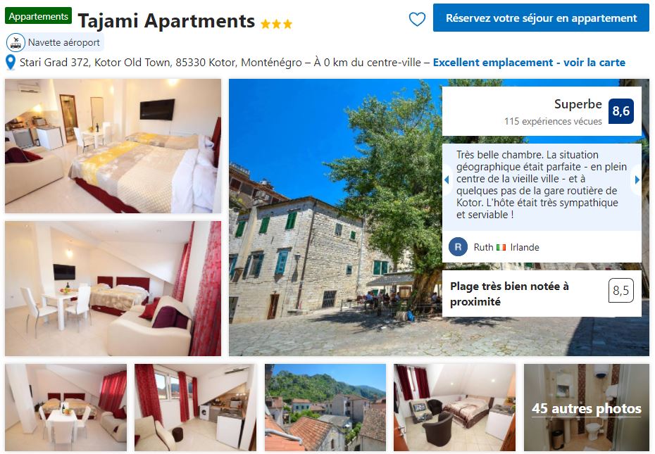 Vous verrez qu’il y a peu d’hôtel à Kotor et que les prix dans les hôtels grimpent assez vites. Si vous optez pour un logement chez l’habitant, lisez bien les avis et regarder bien la note (il faut que la note moyenne soit au GRAND GRAND minimum à 8,5, vous êtes averti).