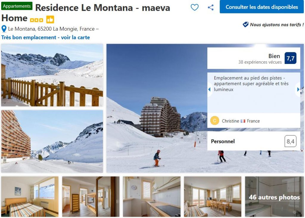 À savoir que vous retrouvez peu d’hôtels à La Mongie, il s’agit surtout de résidences ou de propriétaires particuliers proposant des appartements à la location.
