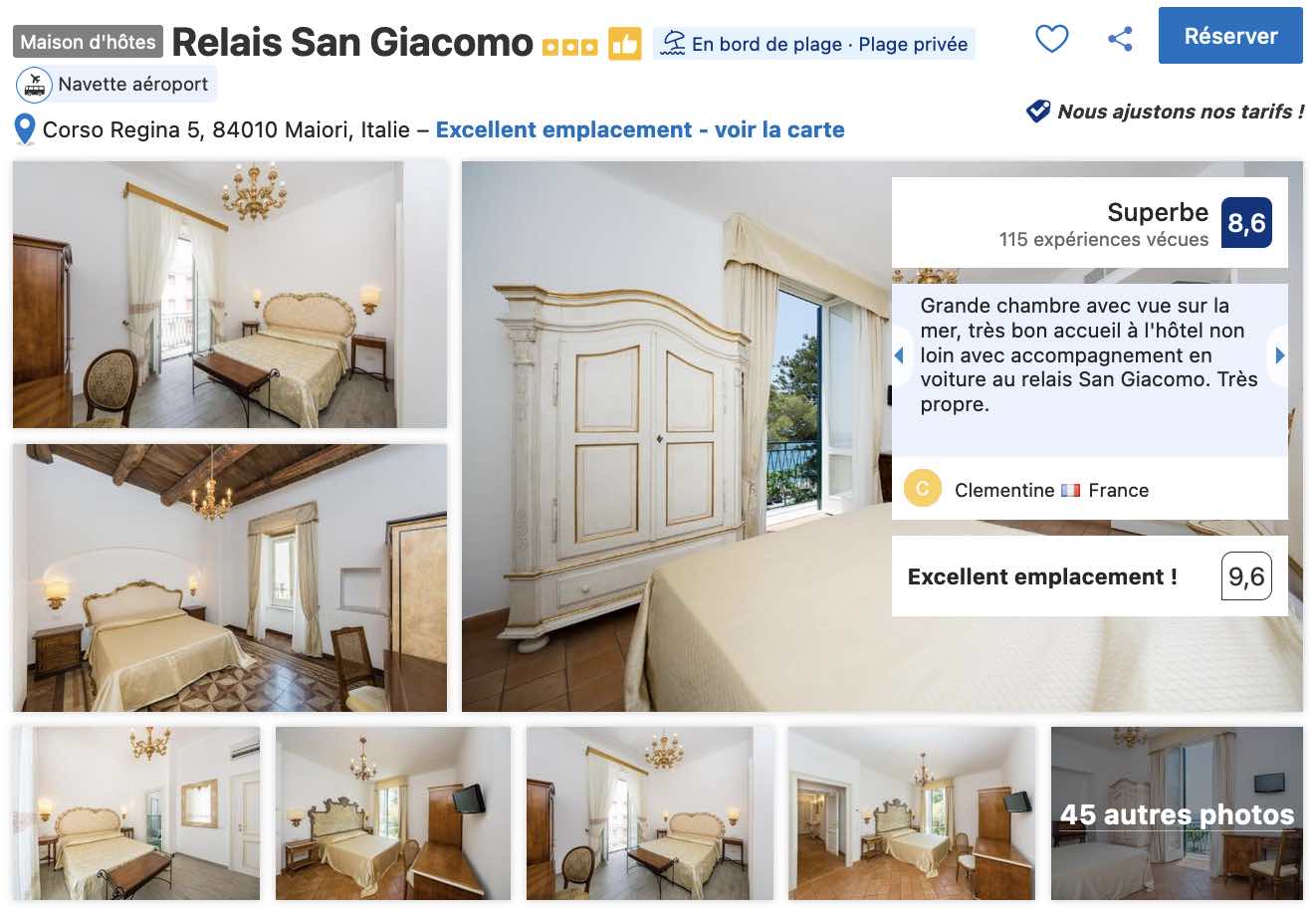 Même si le tarif comprend les petits déjeuners, il faut compter sur un effort côté budget d’autant que le parking est payant, mais l’expérience en vaut le coup, surtout si vous ne passez qu’une ou deux nuits à Maiori.