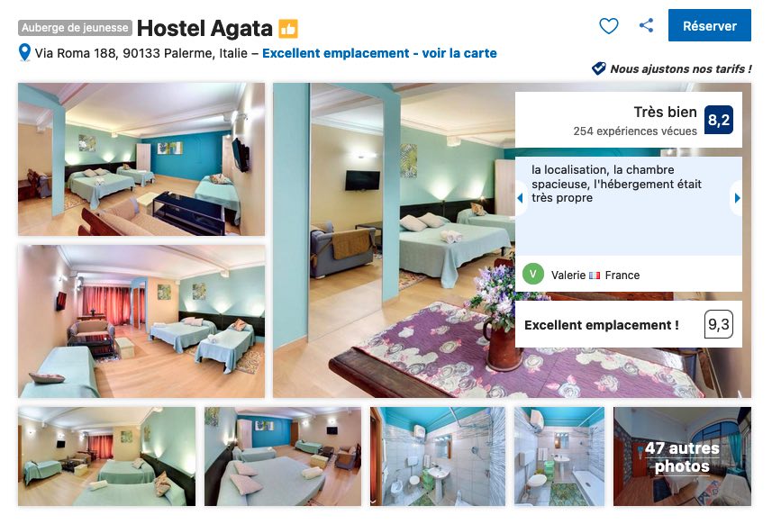 Attention, c’est une auberge de jeunesse mais elle propose des chambres doubles donc cela peu être intéressant ! A voir si vous cherchez un logement pas cher à Palerme dans le quartier historique de Palerme, donc idéalement situé dans Palerme !