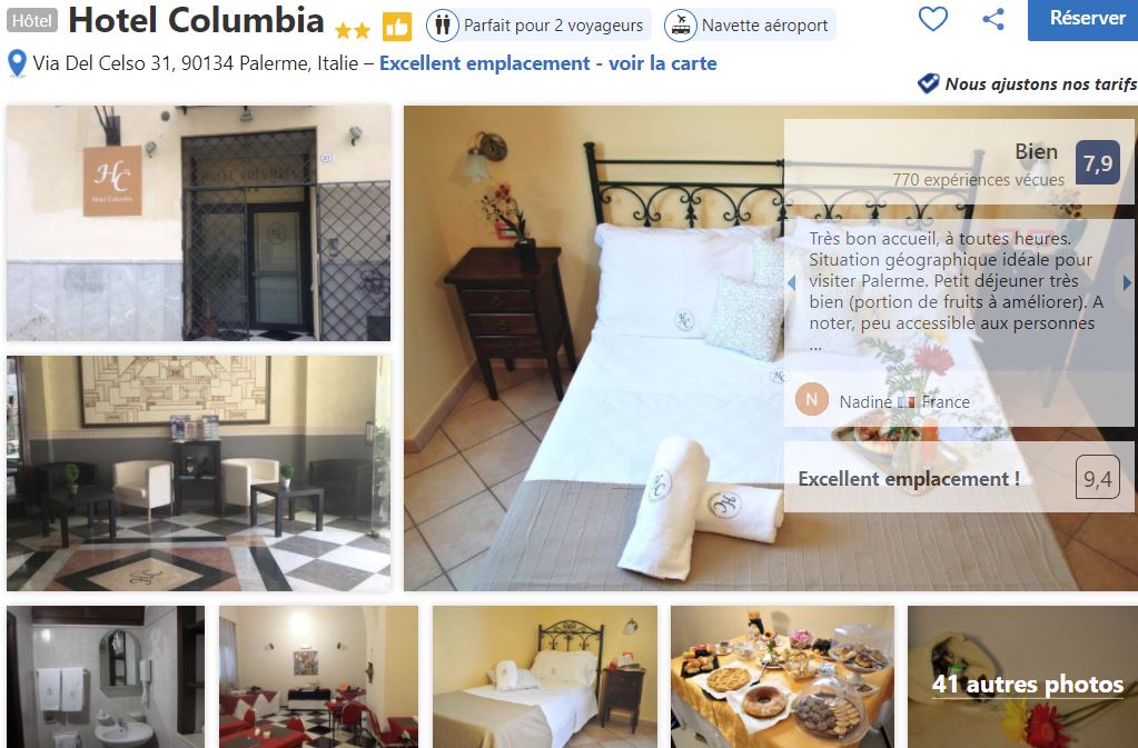 Un hôtel pas très cher et en plein centre de Palerme, jetez un oeil à l’hôtel Columbia ! Les chambres ne sont pas très grandes, c’est une petite adresse avec un parking à 200m…