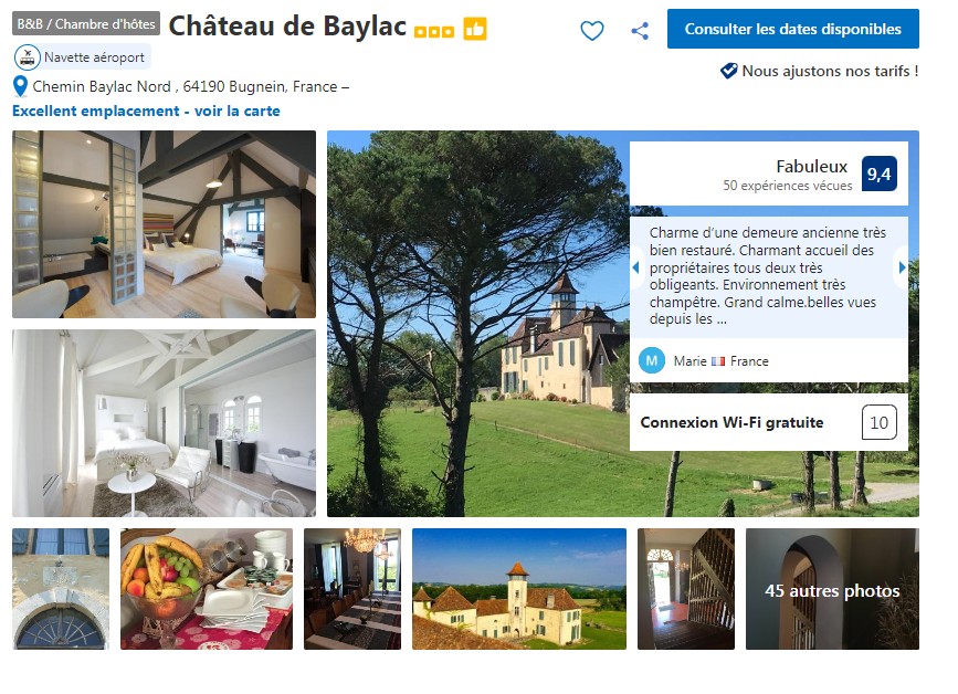Pour finir, un logement qui je le sais saura répondre aux attente de certains, quoi qu’éloigné de Pau, il s’agit du Château de Baylac