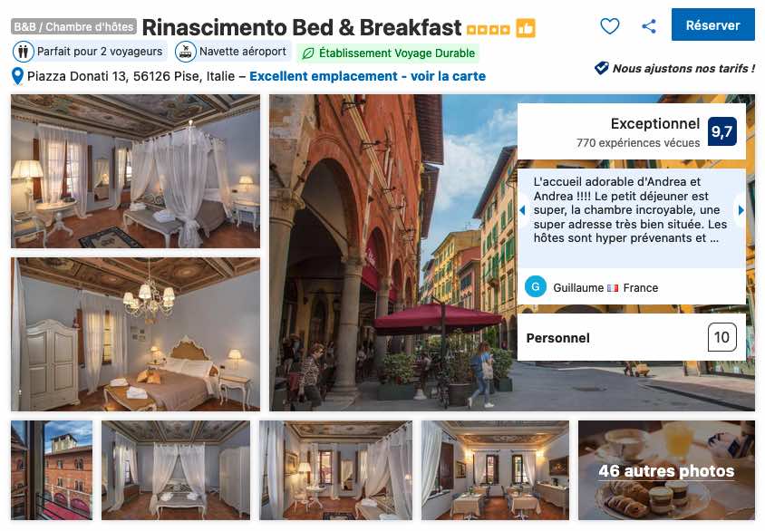 Pour des prestations haut de gamme ou encore le très sélect Rinascimento Bed & Breakfast que je vous invite à découvrir à travers les photos et les commentaires des voyageurs. Seulement si vous êtes prêts à casser votre tirelire !