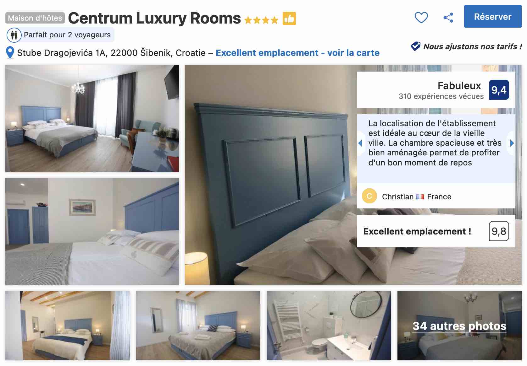 Une petite adresse, le Centrum Luxury (avec des chambres à 60€) en plein cœur de Sibenik avec un parking (payant) à 3 minutes le Centrum Luxury, une bonne adresse qui allie emplacement et parking proche pour ceux qui ont loué une voiture.