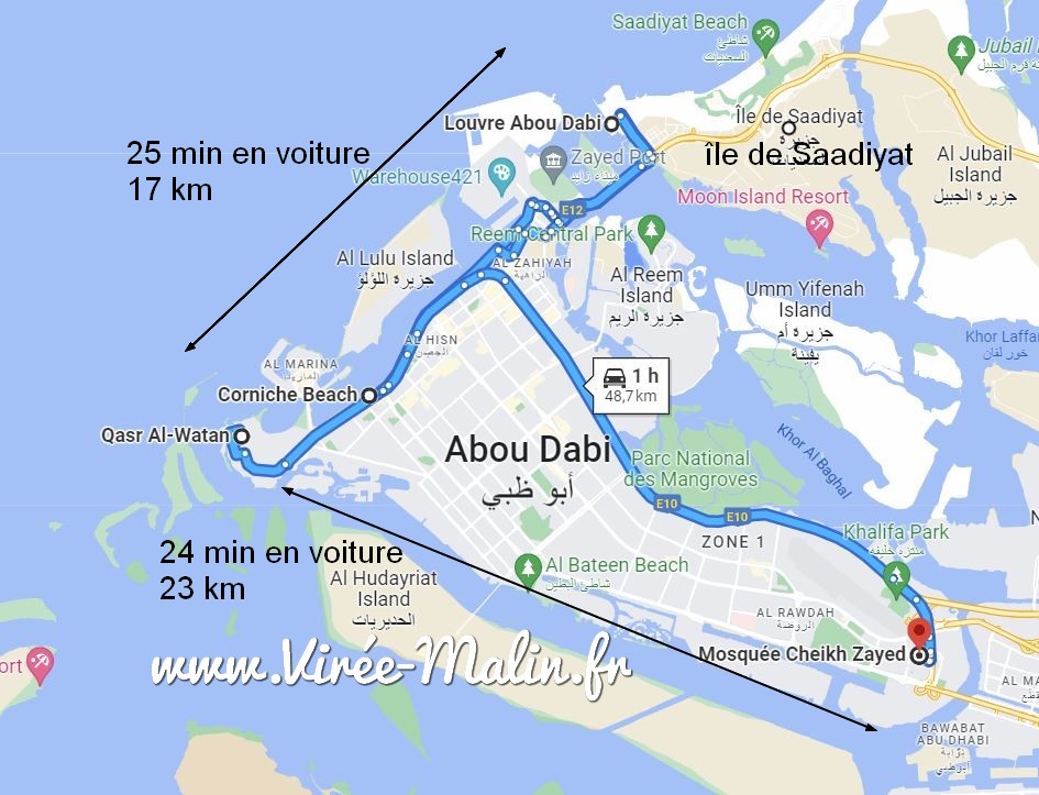 Si vous avez loué une voiture de location à Dubaï sachez qu’il vous faudra compter 1h30 de trajet depuis Dubaï, le trajet est assez simple et la circulation est beaucoup moins dense qu’à Dubaï. Pour ceux qui souhaiterait se rendre à Abu Dhabi en faisant une excursion à la journée sans leur propre voiture de location, jetez un œil sur le site GetYourGuide., et si vous cherchez un guide francophone pour faire cette excursion voilà sa page.