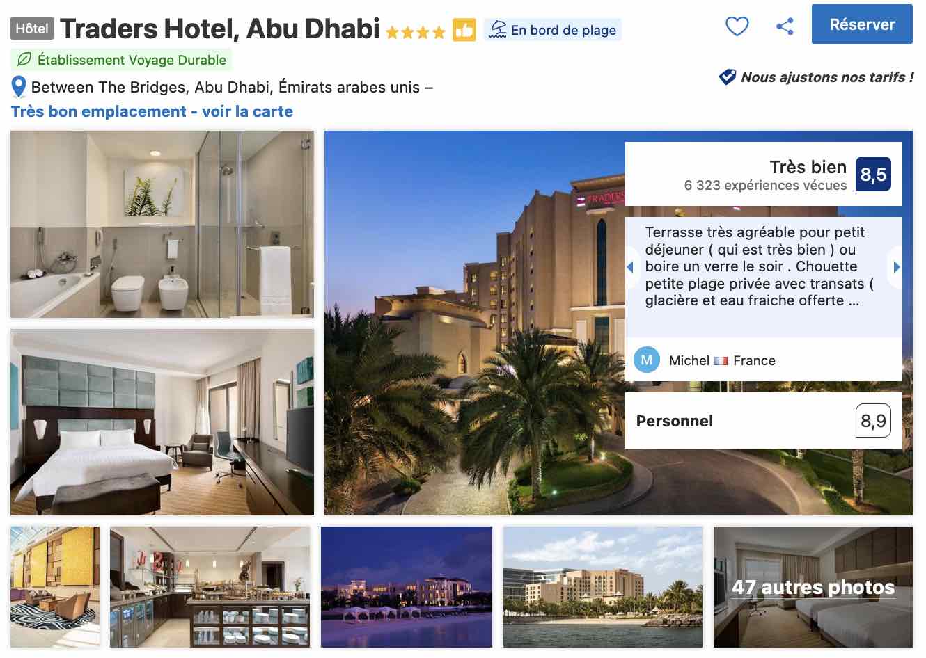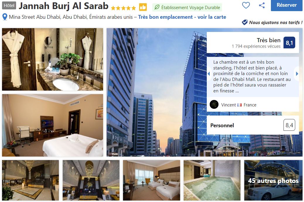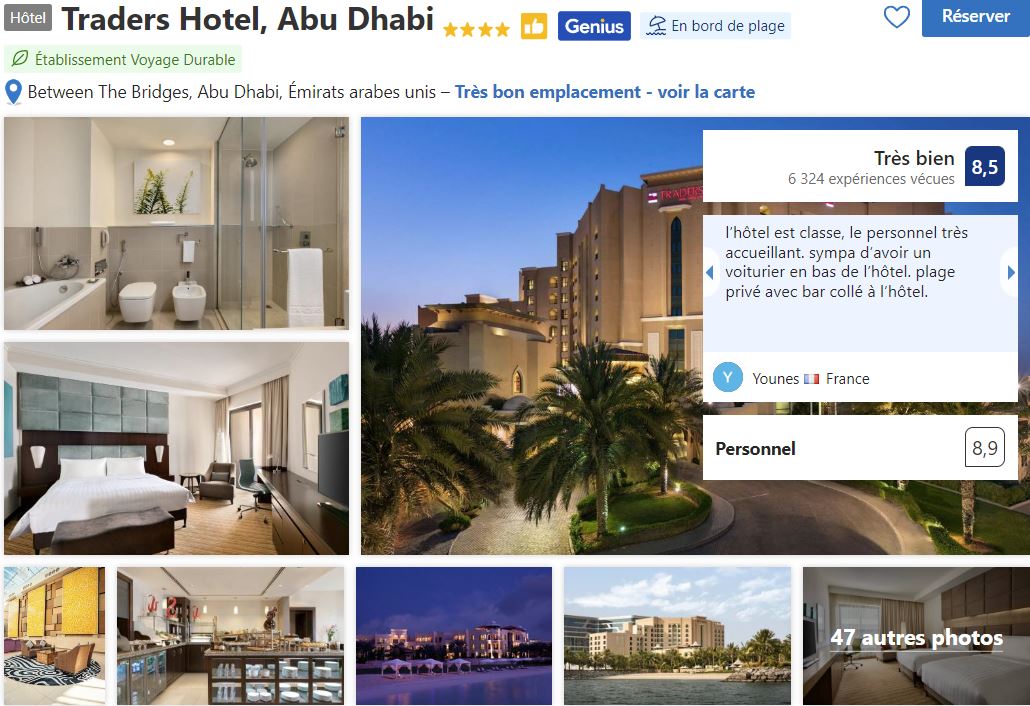 Attention, les tarifs des hôtels à Abu Dhabi ne sont pas réputés comme étant les plus accessibles qui soient si bien que je vous réitère un conseil que je donne souvent : réservez suffisamment tôt pour espérer profiter des meilleures conditions tarifaires.